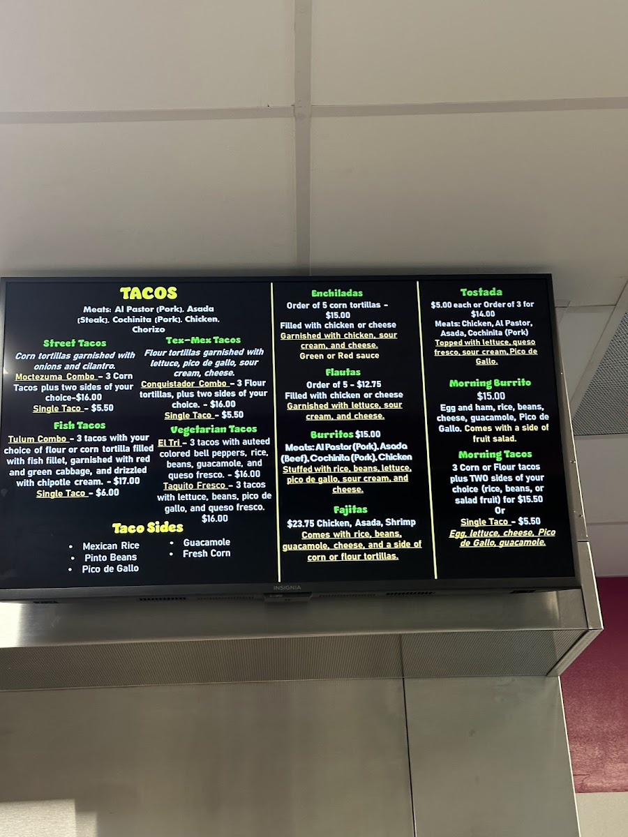 Three flour tortillas with your choice of protein. Garnished with organic lettuce, organic cheese, and organic Mexican pico de gallo. Served with side of Mexican rice and organic beans.